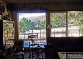 The exterior texture is reminiscent of adobe, an appropriate look in this Valley once occupied by pioneers. Native American artifacts found on site, including grind-stones, are also on display on this rural property.