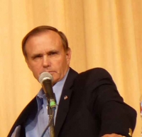 The crowd chanted “You lie!” when Bilbray spoke of how the healthcare reform bill made it illegal to live in this country “without buying a product from a business.” Bilbray called the bill “snake oil.” Busby stated that “There is something in this bill for everyone to love and for everyone to hate….It is a good first step.” She added, “I want to be at the table” for improving healthcare reforms “because people in this country deserve to have affordable, quality healthcare.” The statement drew cheers from her supporters and jeers from Bilbray backers. Grossmith predicted that the healthcare reform bill will bankrupt the United States and suggested that employers withdraw from offering healthcare coverage.