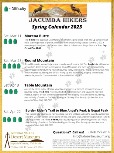 See the two flyers below for details, or visit the Jacumba Hikers Facebook page.