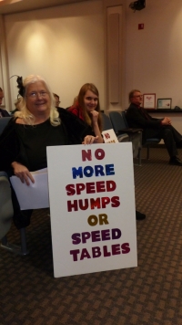 Several members of the public testified, including a man who asked that a 3-way stop sign be considered at Sacramento Drive. Rebekah and Dorcas Hermsmeier spoke in favor of making it harder for neighborhoods to push through approval of speed humps or speed tables by raising the threshold from 50%+! vote of residents on impacted streets to 67%.