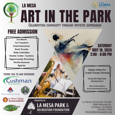 May 2, 2024 (La Mesa) — The La Mesa Park & Recreation Foundation and City of La Mesa are excited to bring together local artists, performers, art enthusiasts, and the community for an afternoon of inspiration and creativity during the annual Art in the Park event.