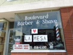 Some businesses are not yet allowed to reopen under state and local health orders, including spas, barber and beauty shops and gyms. Boulevard Barber & Shave posted a heart symbol showing love for La Mesa in its window.