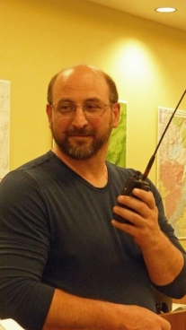 Photo, right: Andy Patterson, in charge of the FRS Family Radio Service ("walkie talkie) exercise during the CERT class.