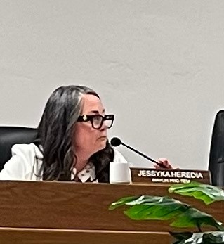 Photo, left, by Armando Rasing II: Mayor Pro-Tem Jessyka Heredia at the latest city council meeting