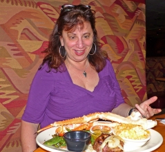 Next came the Alaskan King Crab combo paired with a choice of meaty options; we opted for flame-grilled filet mignon topped with a new garlic butter, mushrooms and onions; other choices included prime rib and top sirloin, each served with a choice of sides.