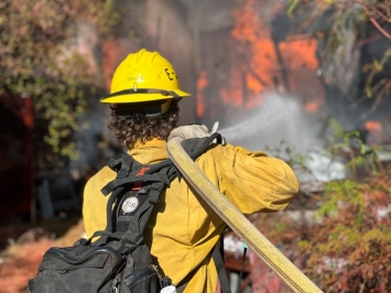 September 9, 2025 (Lakeside) – Swift action by firefighters including aerial attacks held yesterday’s Coches Fire to 5.3 acres, but the damage was substantial. Five homes were destroyed, including three mobilehomes at the Monterey Mobile Lodge, according to Lakeside Fire Protection District's Fire Marshal Jeremy Davis, following a walkaround of the burned sites and perimeter areas Three other homes in the mobilehome park were damaged, and a detached garage also had damage.