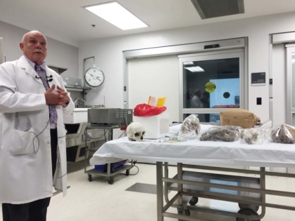 Photo: Chief County Medical Examiner Dr. Glenn Wagner in an examining room for death investigations.