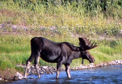Photo, left by Miriam Raftery: moose at Yellowstone National Park