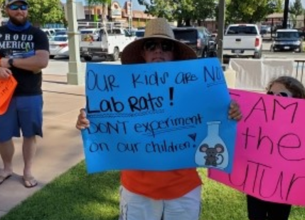 Photo, left by Paul Kruze: Parents protest over Cajon Valley Union School District’s preliminary back-to-school plans for the fall semester.