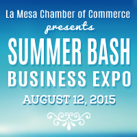 July 31, 2015 (La Mesa) - The La Mesa Chamber invites you to attend the upcoming “Summer Bash” Business Expo on Wednesday, August 12, 2015. This unique evening provides the public, as well as other business members with the opportunity to meet and enjoy conversation with over 50 local businesses that will be there. In addition to the fun-filled evening, the majority of the businesses participating will be giving away a free raffle item to lucky winners throughout the evening.