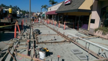 Photo, left: Concrete pour for new sidewalk, courtesy City of La Mesa. See more photos on the City's Twitter feed for the project.