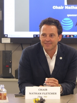 June 8, 2022 (El Cajon) -- Nathan Fletcher, Chairman of the San Diego County Board of Supervisors, fielded questions from East County Chamber of Commerce members during a “Dine and Dialogue” event June 2 at the Chamber’s El Cajon conference room. Due to redistricting, Fletcher now represents parts of East County including La Mesa, Rancho San Diego and Spring Valley, so for many of his new constituents, this was their first opportunity to meet their new Supervisor.