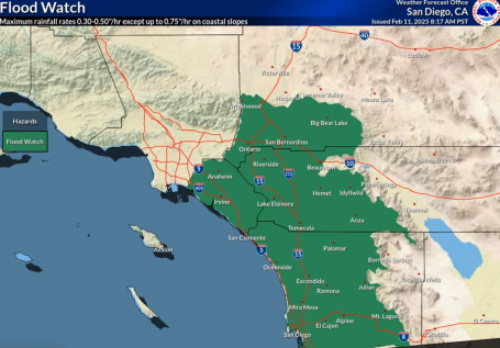 February 12, 2025 (San Diego's East County) -- An atmospheric river is moving into our region, bringing rain today with heavier rain late Thursday and Friday. A flood watch has been issued starting Thursday afternoon through Friday.