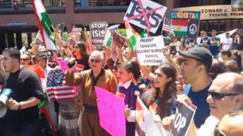 Around 450 protesters gathered in El Cajon, home to tens of thousands of Iraqi immigrants and refugees. The local protesters stand in solidarity with demonstrators in Iraq and decried the violent crackdowns on protesters in Iraq that have injured between 600 and 1,200 people, killing 20 to 30 or more.