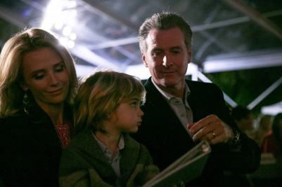 Photo: Gov. Gavin Newsom with first partner, Jennifer Siebel Newsom, and their youngest son, Dutch, during the annual Christmas tree lighting at the Capitol on December 15, 2019. Photo by Anne Wernikoff for CalMatters