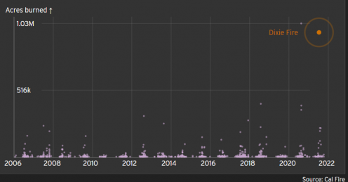 Photo, left: last July, the Dixie Fire ballooned into the second-largest fire in recent history.