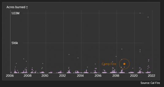 Photo, left: the Camp Fire wasn't the biggest fire by acres. It was not even the biggest that year.