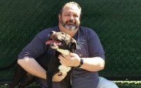 Photo (left): Dolly adopted by new owner;