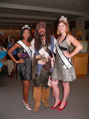 PirateSam "Captain Jack" Sparrow poses with Teen Queens at Celebrate East County event in the Heritage of the Americas Museum: photo by Miriam Raftery (right)