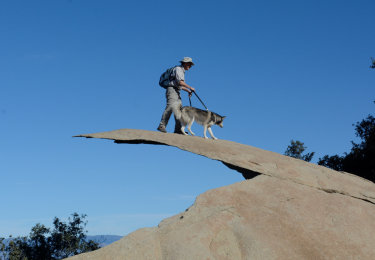 January 2, 2018 (Ramona) -- Recently, our editor's husband took a hike to Potato Chip Rock in the Mt. Woodson area near Poway with our Siberian husky, Juneau, who obligingly posed for photo ops.