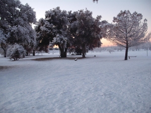 December 31, 2012 (San Diego's East County) -- A blanket of snow envelops our local mountains and rural areas this New Year's Eve. Melody Ponchot arose early to snap sunrise photos as the morning's first rays illuminate snow dusting trees across her ranch in Boulevard (left, right, and below, right)