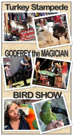 This year, on Nov. 29, Nov. 30 and Dec. 1, Pomegranate Days celebrates its 9th year with much more than the traditional camel feeding, camel show and camel rides. Guests can also savor pomegranates for sale from the family farm’s orchard, a comedy magic performance by Godfrey the Magician with his Magic Castle, and just in time for Thanksgiving weekend, a Turkey Stampede by pardoned gobblers from the award-winning state fair traveling turkey race show. Click here for video.