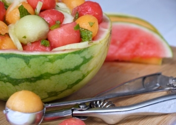 Frozen melon makes an easy treat during our summer months – simply slice into wedges or interesting shapes, stick in a popsicle stick if desired, and freeze. Below are some fresh recipe ideas using melons – any fresh melon can be added or substituted in any of these recipes.
