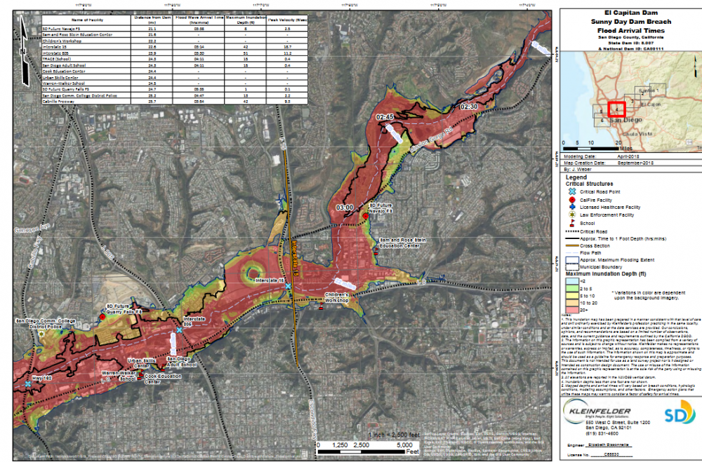 For example, in 33 seconds, El Capitan High School in Lakeside would be under 23 feet of water, and several other schools are in danger of being drowned before people could possibly evacuate out of Lakeside.