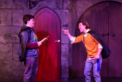 The stage is constructed as a castle perimeter with several doors. The set looked great and was well constructed.