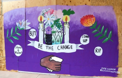 Yet, any great societal movements require ordinary people to come together to effect real and meaningful change. The uplifting response of hundreds of volunteers, including some of our own Board and Society members and partners on Sunday morning May 31st in our downtown is one such effort. Their bringing brooms, brushes, paint and materials to clean up and secure the damaged businesses is a sign of our community’s underlying character. These were not just City of La Mesa residents but those from the entire Greater La Mesa area and beyond. Over the following days numerous artists and community members created beautiful and poignant murals and art that reflected and demonstrated not only our community’s pride and spirit to persevere and overcome—but sending a clear message of empathy and compassion for the greater cause of justice and equality for all Americans.
