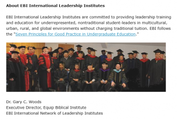 Woods is executive director of Equip Biblical Institute, or EBI International Leadership Institutes, a private religious school that is part of Shadow Mountain Ministries.