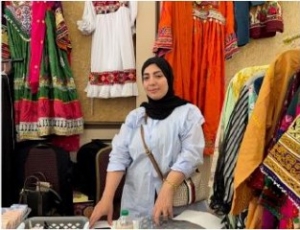 One woman (photo, left) offered brightly colored, intricately detailed traditional Afghan clothing which can no longer be worn today in Afghanistan under Taliban rule.She told East County Magazine she “misses her homeland deeply, but… it is impossible to return.”