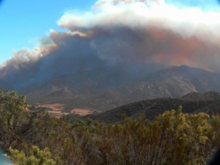 Photo, left: Harris Fire viewed from Barrett Junction, the morning of October 21, 2007