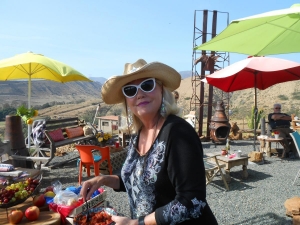 June 3, 2015 (Cantamar, Mexico)--Robin MacKenzie, proprietor of Black Cross winery in Cantamar up in the hills helps to support Pretty Horse Rescue owned by Krystal Redmon. Robin had her first anniversary party on a fine May afternoon overlooking the hills surrounding the property where both businesses coexist.