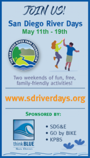 Over two weekends, May 11-12 and May 18-19, the San Diego River Park Foundation and 41 partner organizations have collaborated to put together a list of fun (free!) activities for individuals, groups, and families.