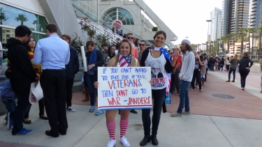 April 23, 2016 (San Diego) – Democratic presidential candidate and Vermont Senator Bernie Sanders spoke to an enthusiastic crowd of over 13,000 people at the San Diego Convention Center last night, informing the crowd that his campaign is doing ”something unusual in politics. We are telling the truth.” He then stated, “We cannot go forward as a nation unless we are willing to confront real issues.”