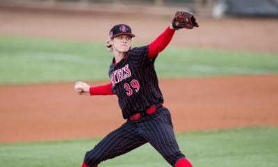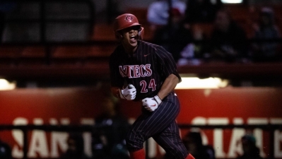 April 15, 2023 (Fresno) - Charlie Rhee ripped a one-out single in the top of the 10th inning to score Cole Carrigg with the go-ahead run, as San Diego State edged Fresno State, 4-3, in the opener of a three-game Mountain West series Friday at Pete Beiden Field at Bob Bennett Stadium.