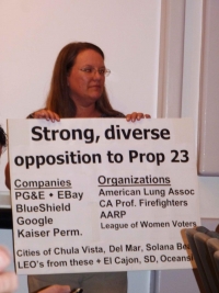 Other opponents of Prop 23 testified that it would increase cases of children’s asthma, heart and lung disease, raising California’s healthcare costs if AB 32 is repealed. Prop 23 is opposed by the American Lung Association, the League of Women Voters, and the American Association of Retired Persons. It is also opposed by the California Professional Firefighters (failing to address global warming could also lead to more devastasting wildfires.)