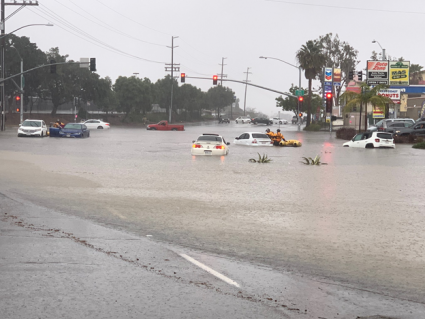 Elsewhere in the County, flooding has occurred. In La Mesa, an RV park flooded with several feet of water, according to 10 News. Along the coast, King tides combined with heavy rains have flooded some seaside communities. (Photo, right, via San Diego Lifeguards)