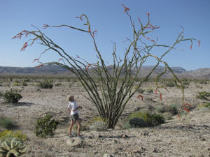 April 9, 2012 (San Diego’s East County)--Driving through the southwestern deserts, I’ve long been impressed by the ocotillo, a cactus-like tree with straight branches angling upwards to the sun, ablaze with red blooms. This thorny desert tree is an apt metaphor for the ways different people view energy issues-- especially proposed industrial solar and wind power projects in remote wilderness areas. Like the ocotillo, these programs and policies have a wide array of angles from which to be viewed.