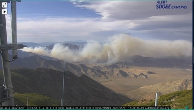 Update May 2, 2021 2 p.m. p.m.  County Fire reports that  aircraft and Copter 129 are on scene; a helitanker and a second copter are en route. Tankers are unable to drop due to the wind. Fire is burning southwest of the Butterfield community. The County has issued a smoke advisory, noting that smoke is blowing southeast of the fire, into Anza-Borrego Desert State Park.
