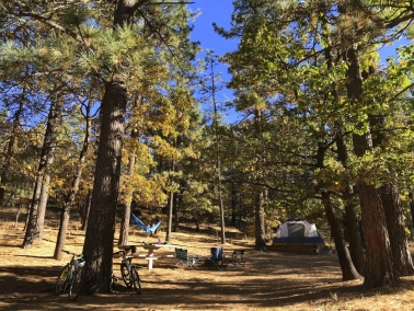 Photo, left: Cherry Loop Site #84 at the Burnt Rancheria Campground, just before sunset. October 21st, 2017. Photo by Jack Riordan.