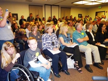 Last night, Superintendent Ralf Swenson informed the crowd that the enrollment threshold falls short—by about 20 students. Moreover, the district faces a $19.5 million deficit in 2011-12 and a projected $23.2 million deficit in 2012-13.