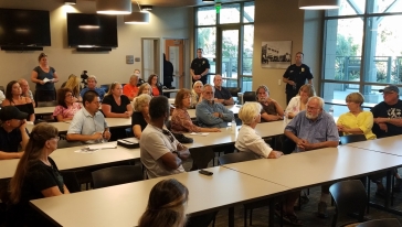 September 5, 2017 (El Cajon) -- Hundreds of people showed up for a rally and empty chair town hall hosted by Indivisible at Cuyamaca Community College, in Congressman Duncan Hunter Jr.’s Congressional District on August 26th The event was organized by Indivisible, a group opposed to Hunter, after the Congressman failed to host a second town hall in his district following a contentious town hall back in March in Ramona where hundreds lined up and could not get into the packed venue.