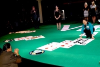 The record was set at 9:45 a.m. September 13, as six guests sat at a massive blackjack table measuring just over 2,226 square feet and played a hand of blackjack with chips and cards that were ten times the size of the actual Viejas blackjack chips and cards. Philip Robertson, an official “Adjudicator” for Guinness was on hand to confirm the measurements and witness the hand of blackjack…and the new record was officially certified amid a rousing round of cheers and applause from Viejas Team Members and guests in the DreamCatcher at Viejas Casino.