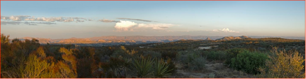 (Image: View from Boulevard’s Tierra Del Sol Road of the Sierra Juarez mountain range looking across Jewel Valley and Jacumba Valley—where real people and diverse wildlife now reside. Wind turbines close to 500 feet tall have been proposed by Enel Green Power on the Tierra Del Sol ridgeline in the foreground and on the distant Sierra Juarez ridgeline in Northern Baja by SDG&E’s parent Sempra. – Bill Parsons photo)