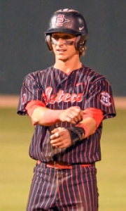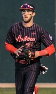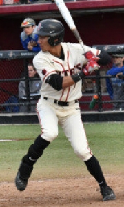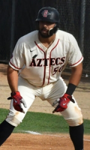 Photo: Hunter Stratton had a pair of hits, including his first home run of the season, in the contest against UNLV Thursday night. Courtesy goaztecs.com