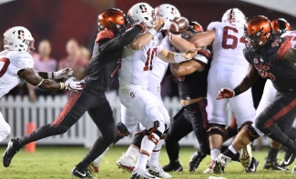 September 17, 2017 (San Diego) - Christian Chapman connected with David Wells on an 8-yard touchdown pass with 54 seconds remaining to lift San Diego State to a thrilling 20-17 come-from-behind victory over No. 19/19 Stanford in front of 43,040 fans Saturday night at San Diego Stadium.