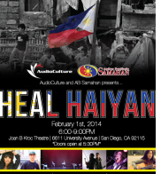 AudioCulture and SDSU’s AB Samahan will team up on Saturday, February 1st from 6 p.m. to 9 p.m. at the Joan B. Kroc Theatre on University Avenue near La Mesa to raise money for the thousands of Philippine victims of super typhoon Haiyan.