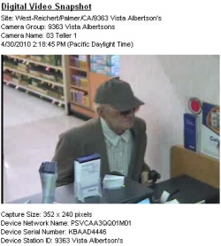 December 16, 2010 (San Diego) --The FBI and several local banks are offering a combined reward of $20,000 for information leading to the arrest and conviction of the “Geezer Bandit.”